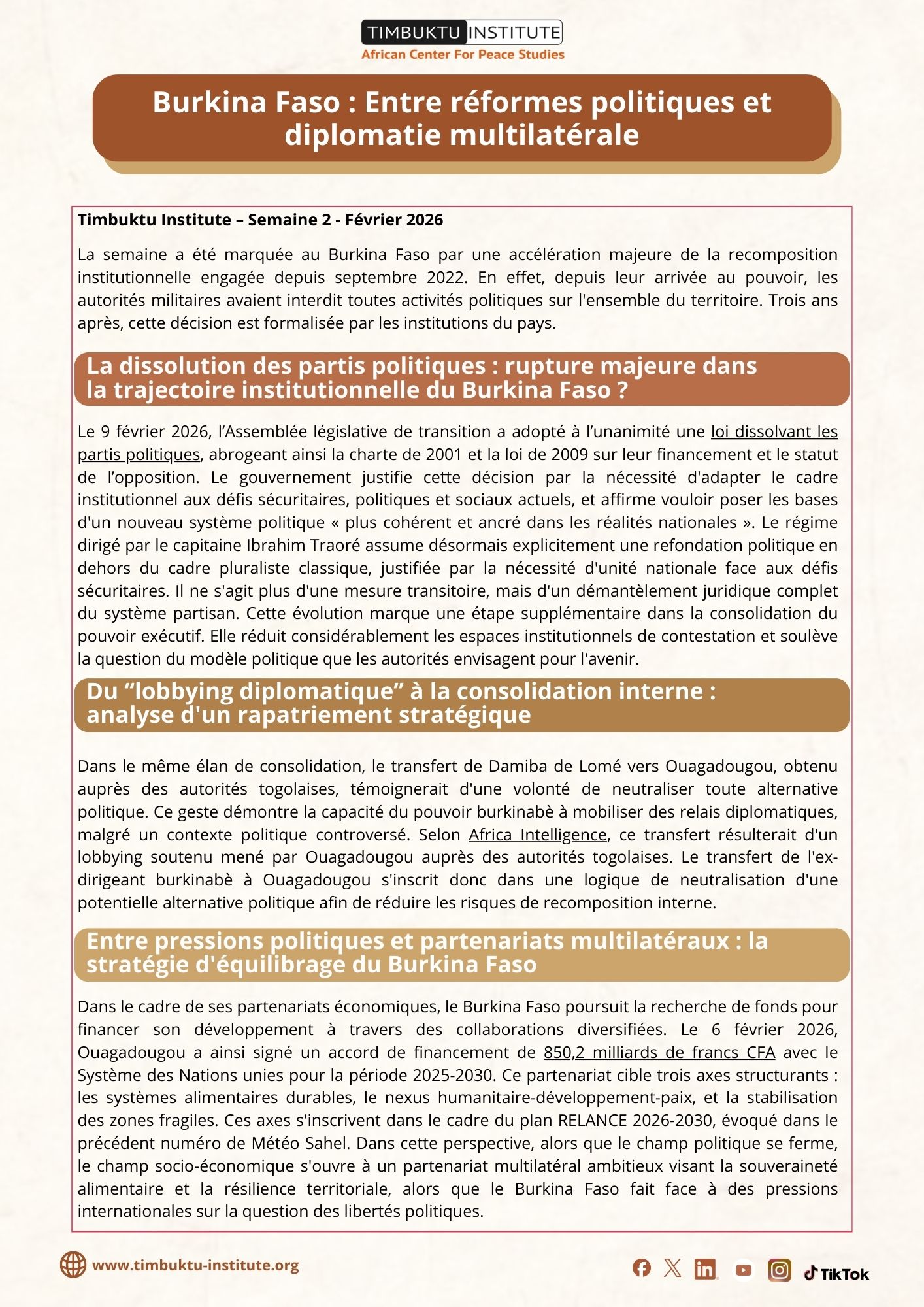 Timbuktu Institute - Semaine 2 - Février 2026